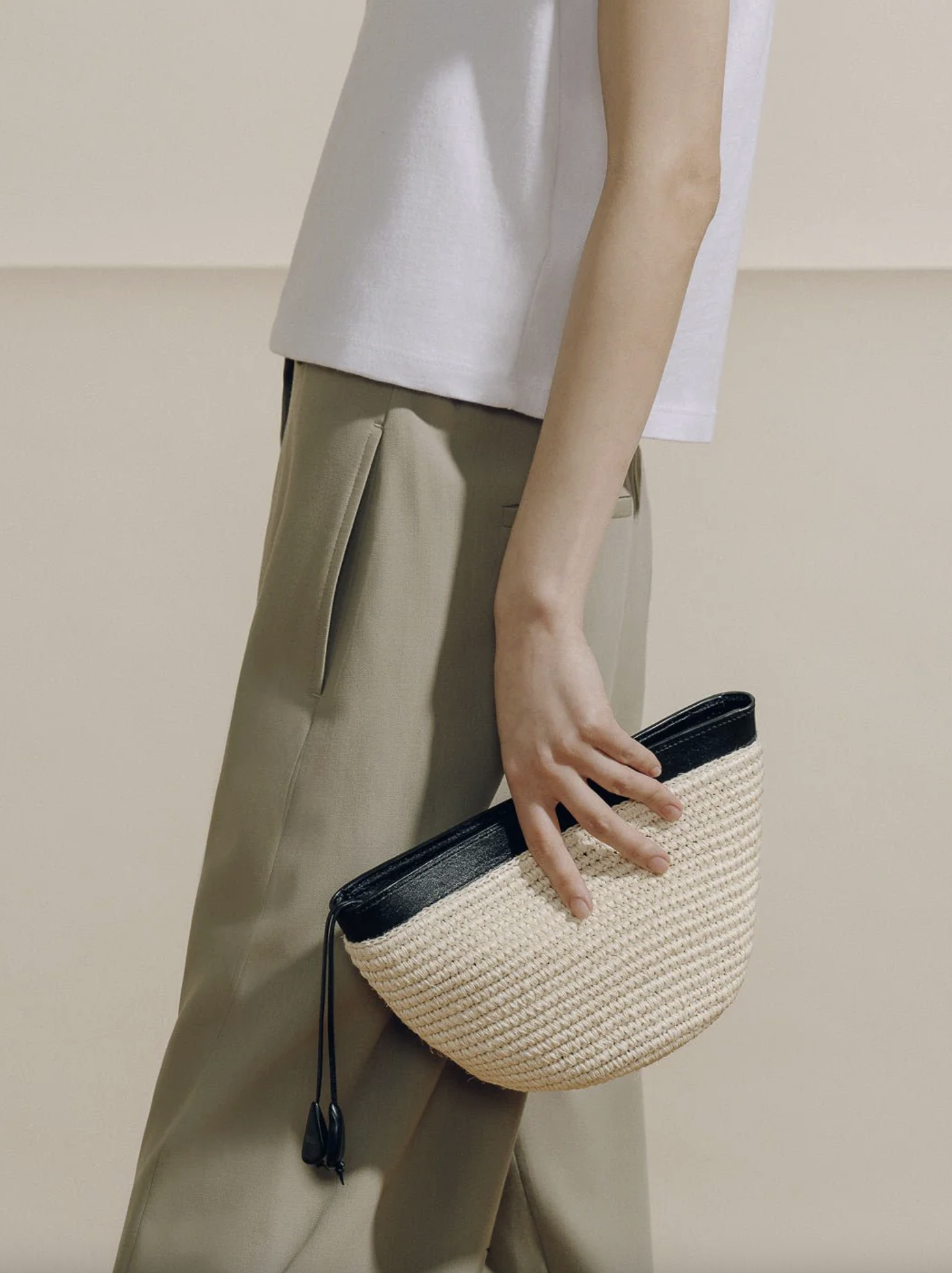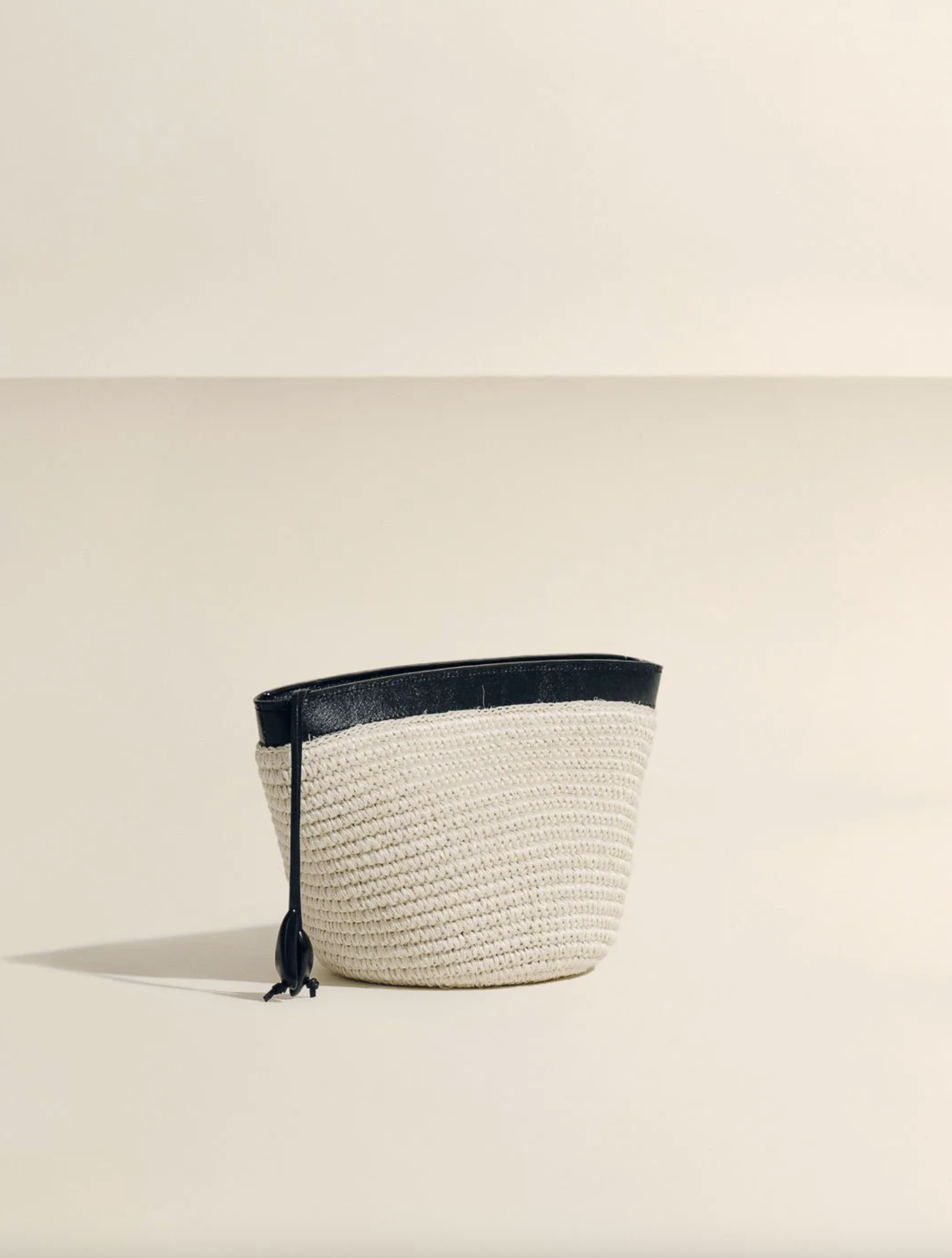 The Medium Zip Clutch is a refined expression of artisanal craftsmanship, handwoven from natural fibers and elevated with smooth leather trim. A secure zip closure and structured silhouette offer effortless functionality, making it an elegant companion from day to evening.