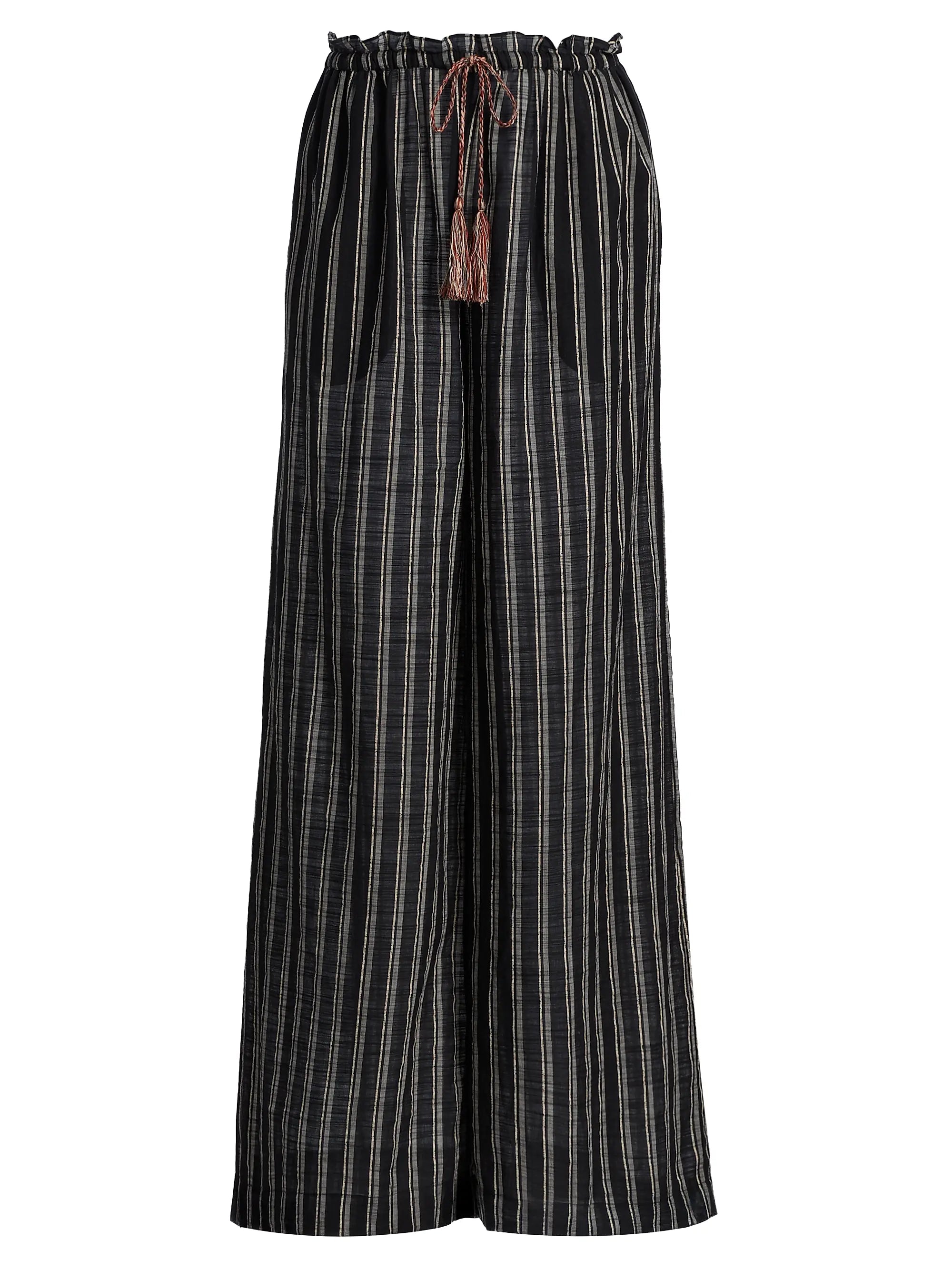 Crafted of striped cotton, these Ulla Johnson straight-leg pants are styled with a drawstring waistband detailed with tassels, and side slip pockets.