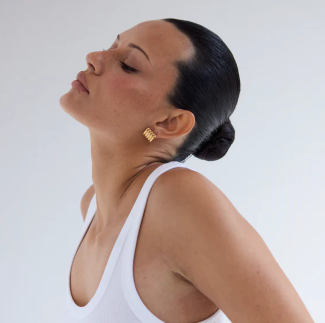 These dainty, ribbed gold-plated stud earrings feature a structured, curved design that adds texture and dimension to any look.