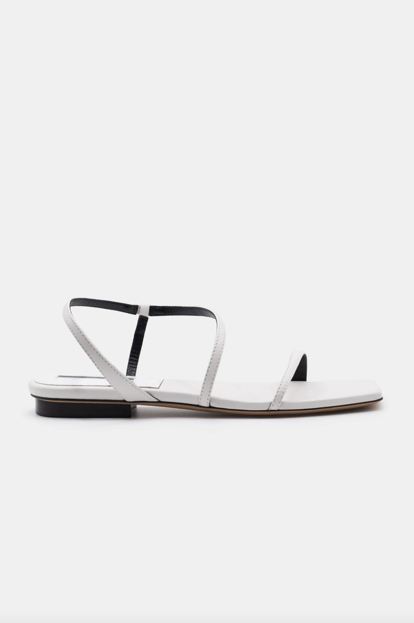 A barely-there flat sandal defined by an isola heel and thin, asymmetrical straps.